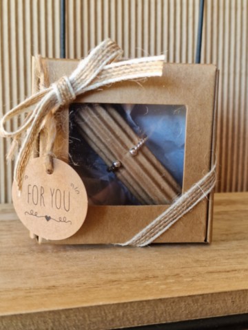 Chaque cadeau est unique. Il est soigneusement placé dans un petit sac en papier kraft aux teintes harmonisées.