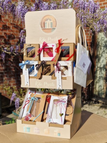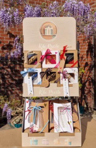 Ces cadeaux prêt à être offerts, sont disposés sur leur présentoir et proposés à un prix de 45€.