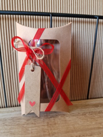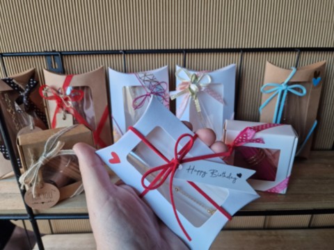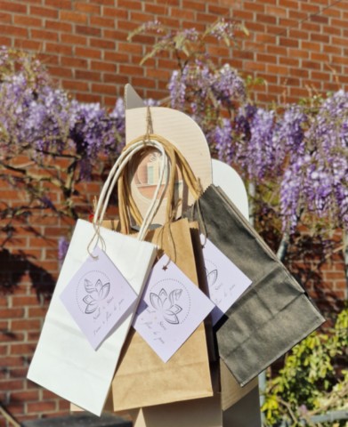 Chaque cadeau est unique. Il est soigneusement placé dans un petit sac en papier kraft aux teintes harmonisées.